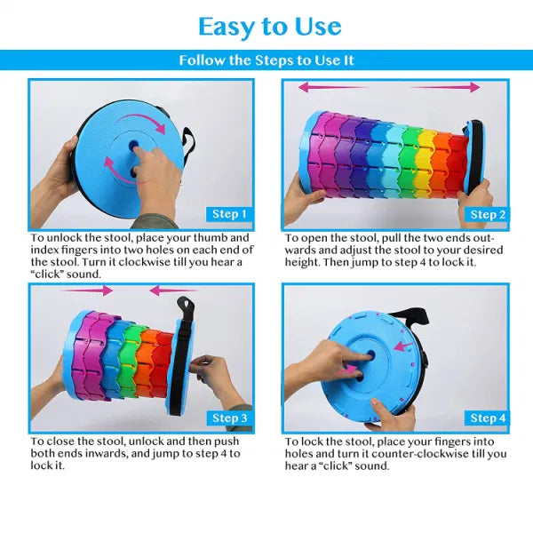 • Size: The stretched size is 45*25cm*25cm, and the folded size is 25cm*6cm. Small size and space saving, each package is equipped with star pattern storage and each telescopic stool with a shoulder strap .So it is easy to carry, beautiful and practical to use.